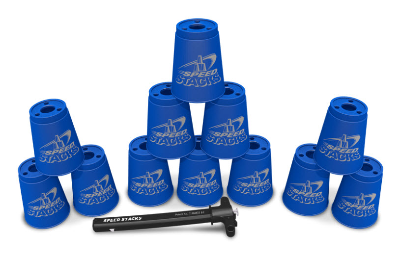 Includes 12 SpeedStacks Cups, a Quick Release Stem for easy carrying, and various pamphlets (with links to online resources for getting started with sport stacking).