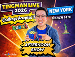 This is a ticket to the afternoon showing of Tingman Live: Challenge Accepted 2026 on March 14th in New York, New York at 1:00 PM local time.