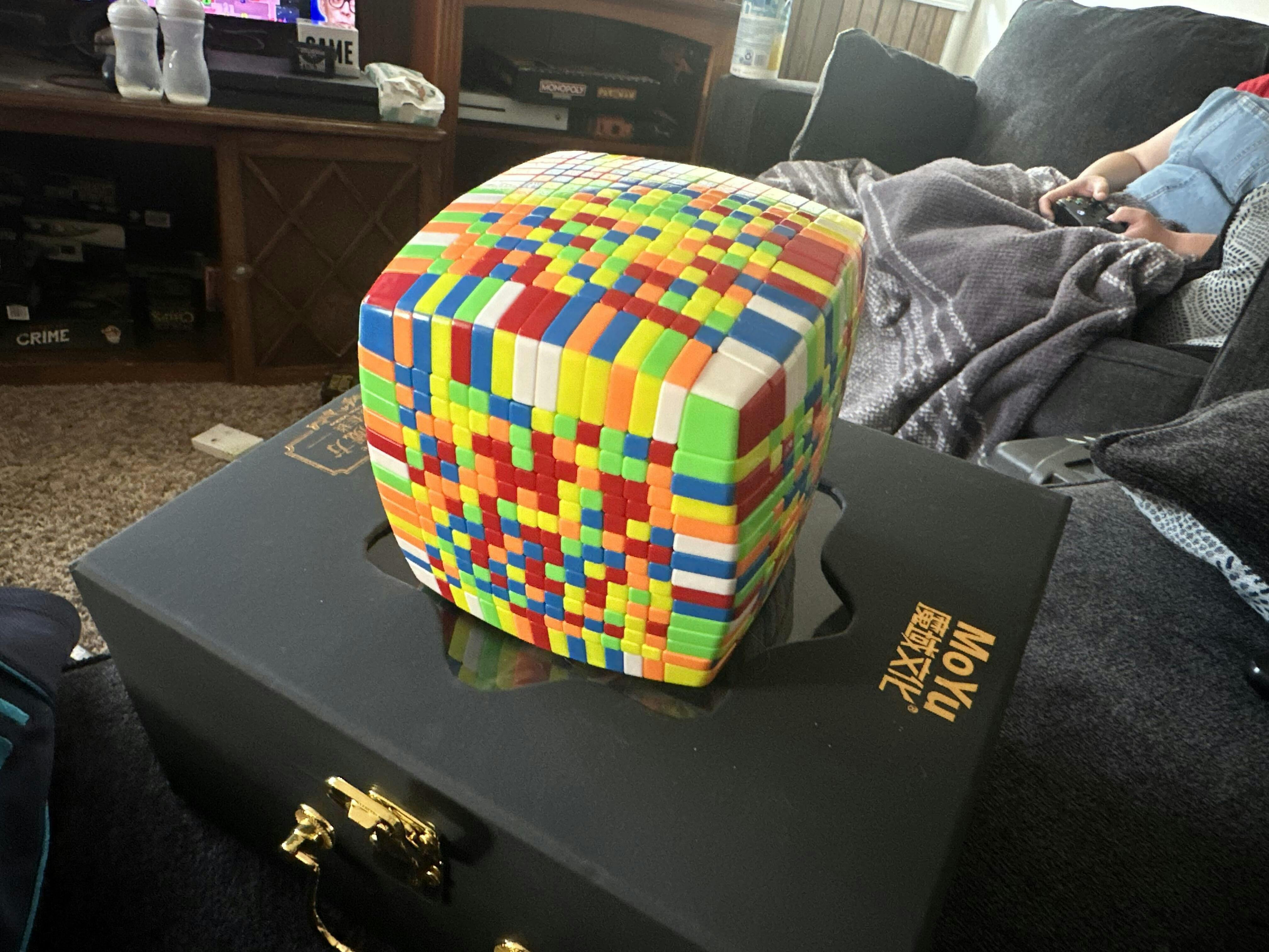 The MoYu 15x15 is the largest big cube release from MoYu. This cube features a great compact size for better turning and maneuverability. It comes in a luxury carrying case with gold accents and handle.