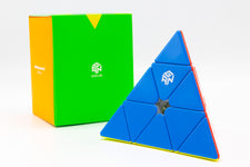 The QJ Pyraminx is a low-priced pyraminx puzzle featuring thick and durable tiles on each side. It features a clicking mechanism that helps the sides snap into place when solving.