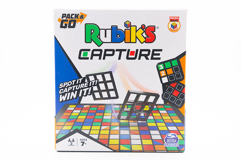 Rubik's Capture, Pack & Go Travel Game is a fun game designed to get your hands and brain working fast. It comes with cards you turn over one at a time that reveal a pattern. Be first to find the pattern on the game board and capture it with your grid and you're on your way to victory!