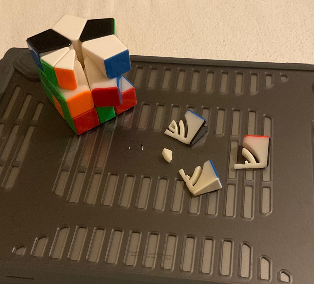The corners on 2x2 puzzles should not be twisted as doing so may snap the piece. Damage caused by
