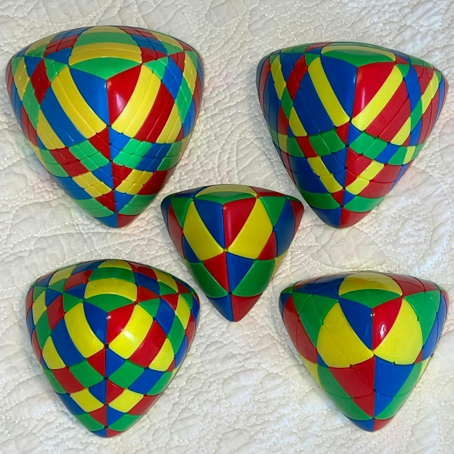 I absolutely loved their 8x8 version I got a while ago, to the point of wanting the rest of the series. The puzzle is really good: smooth turning of all layers, nice size, decent grip, etc. That said, the hand feel is not as good as the larger one (sides too flat, transition between faces too abrupt, etc), and the colours are different (darker blue, less rich yellow, cherry vs rich red, …). The matte texture is not as nice as before, but at least it isn’t cheap feeling glassiness the 4x4 and 5x5 have.