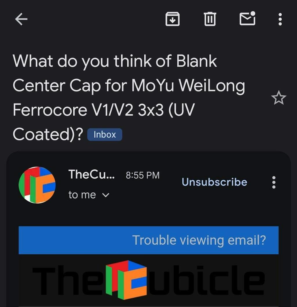 This is the Blank Center Cap for MoYu WeiLong Ferrocore UV 3x3 (Special Edition WRM V10). A perfect solution for blind solvers or anyone who likes using their own logos! Also fully compatible with Ferrocore V2.
