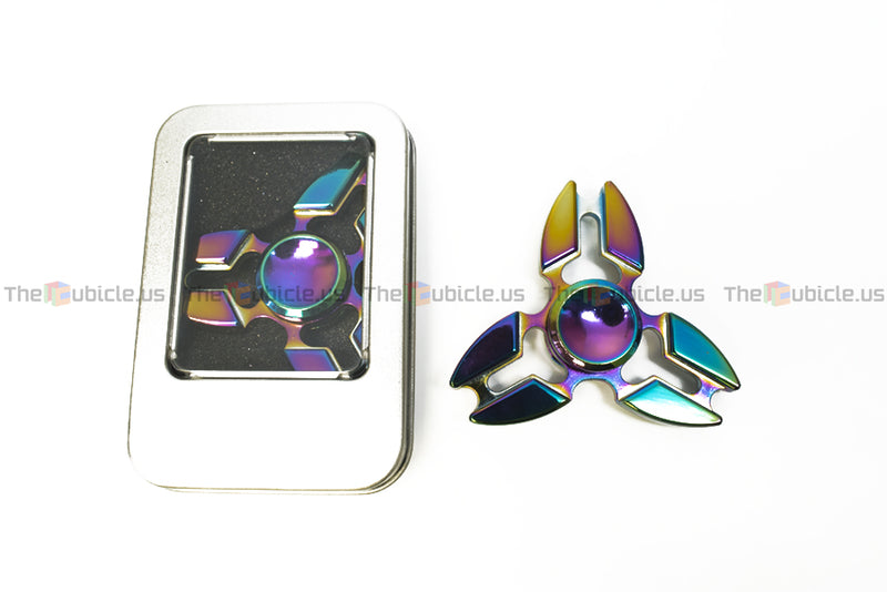 This version features high-quality steel ball bearings and a metallized rainbow frame. It is packaged inside a sturdy metal box.