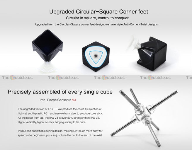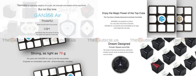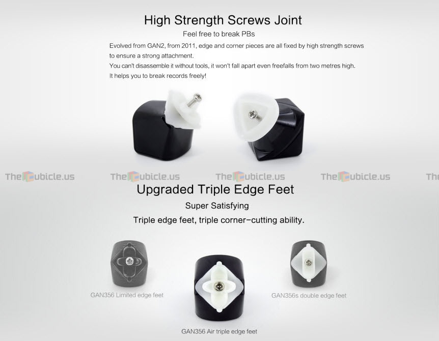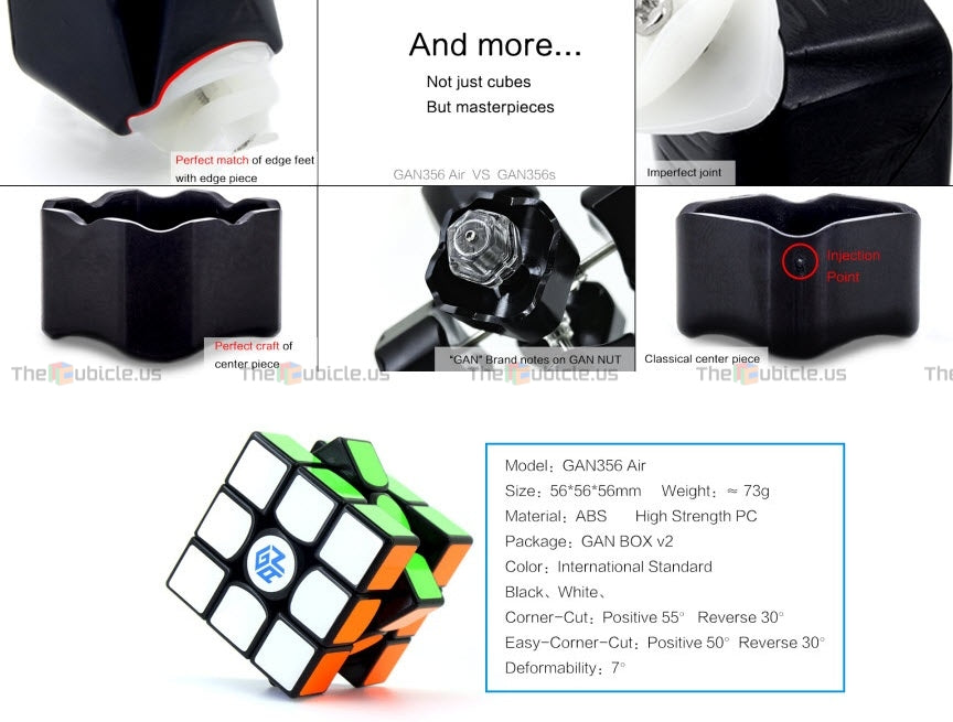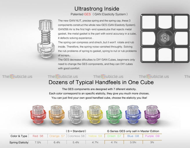 Master Version: This is the Master version of the Gans 356 Air. The Master version features the Gans half bright sticker set pre-applied to the cube. It also comes with the plastic adjusting tool and a set of Red (S6), Orange (S7), and Yellow (S9) GES Components. Please note that GAN is transitioning from the metal tool to the plastic one, so some packages will come with the new plastic tool instead.