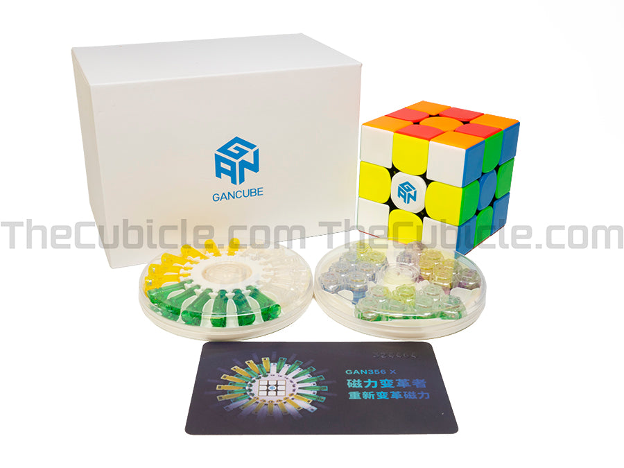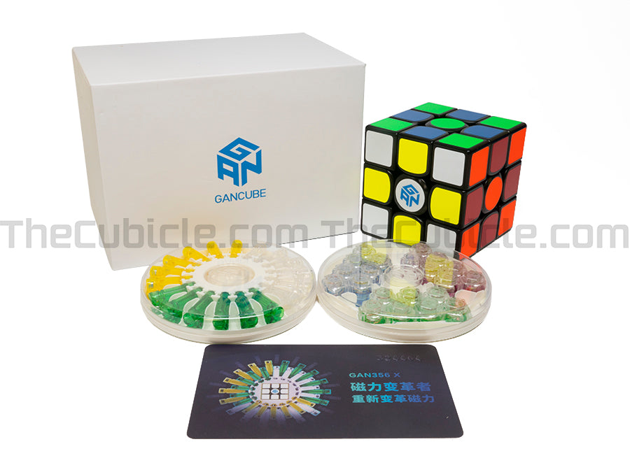 This cube also comes with magnetic capsules, transparent cube box, set of GES nuts, GES/GMS manual, solve tutorial pamphlet, and a newly designed GAN356 X card.