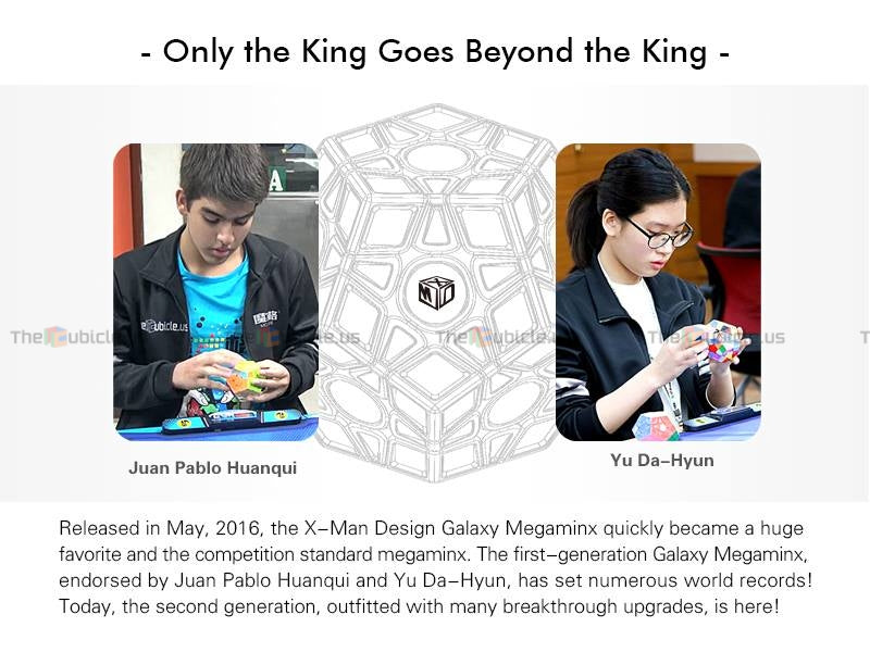 The X-Man Galaxy Megaminx V2 is the upgraded version of the highly-acclaimed X-Man Galaxy Megaminx, which was used to set numerous records. Compared to the V1, the V2 features a more compact design, lower weight, improved corner cutting, and an overall more stable feel. The stickerless variant also comes with a set of black parts in the box, which can be used to switch one side to black.